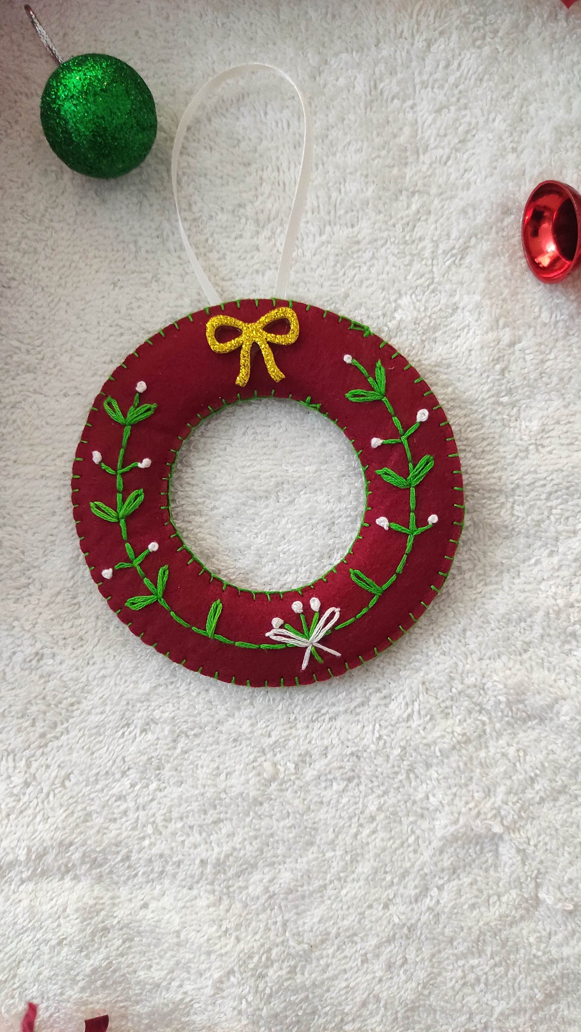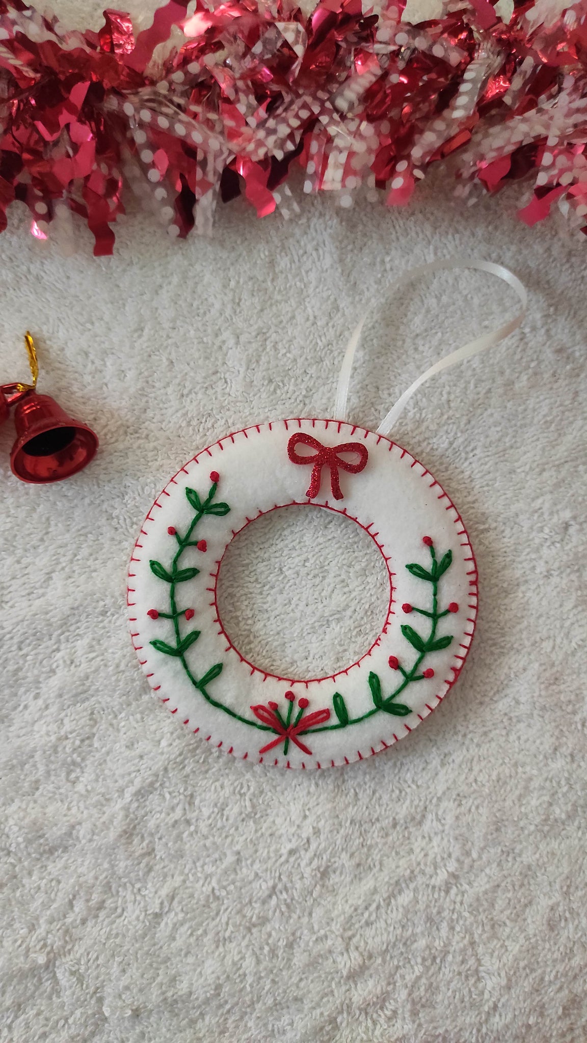 • Load image into Gallery viewer, Christmas Handmade embroidered wreath  Ornament